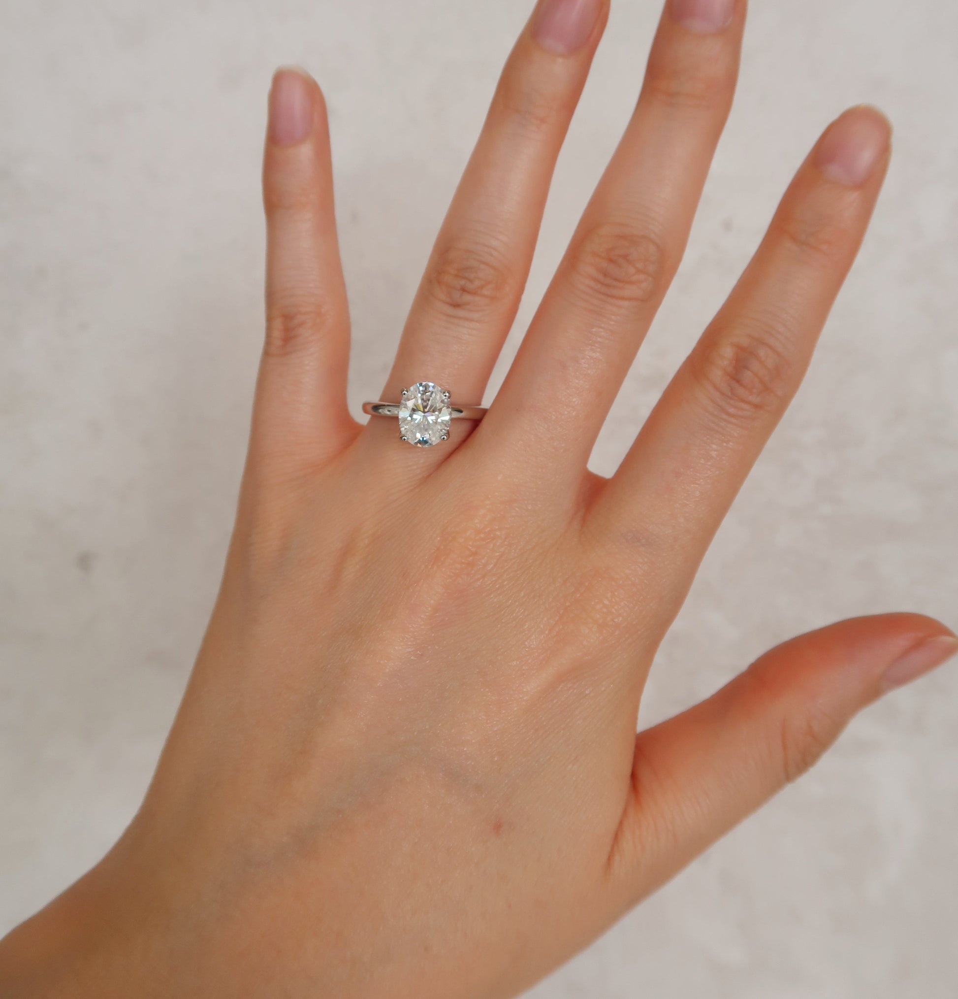 Un diseño sofisticado que nunca pasa de moda. Este anillo solitario destaca por su moissanita ovalada de 2 quilates, una piedra que ofrece un brillo excepcional y un aspecto casi idéntico al diamante, aportando elegancia y distinción a cualquier look.