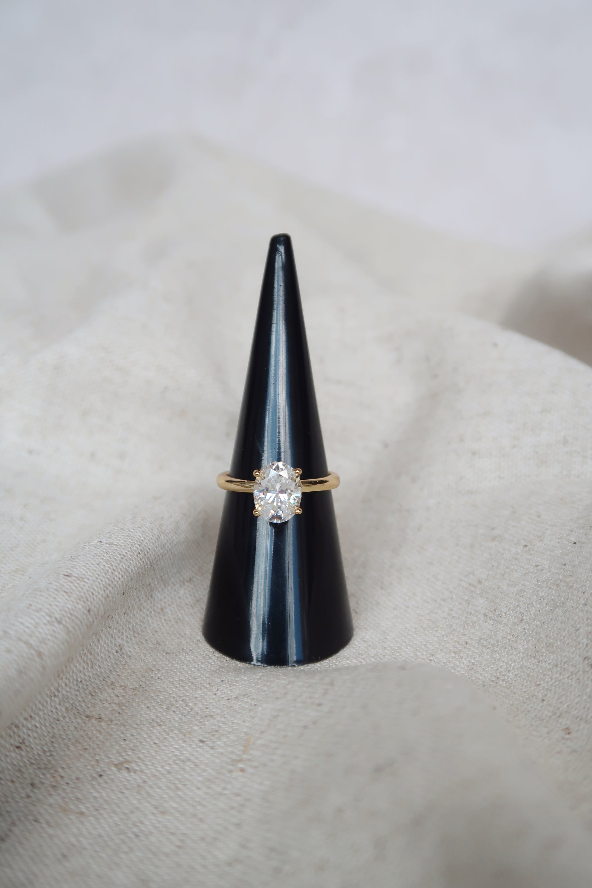 Anillo solitario ovalado 2 CT dorado con Moissanita
