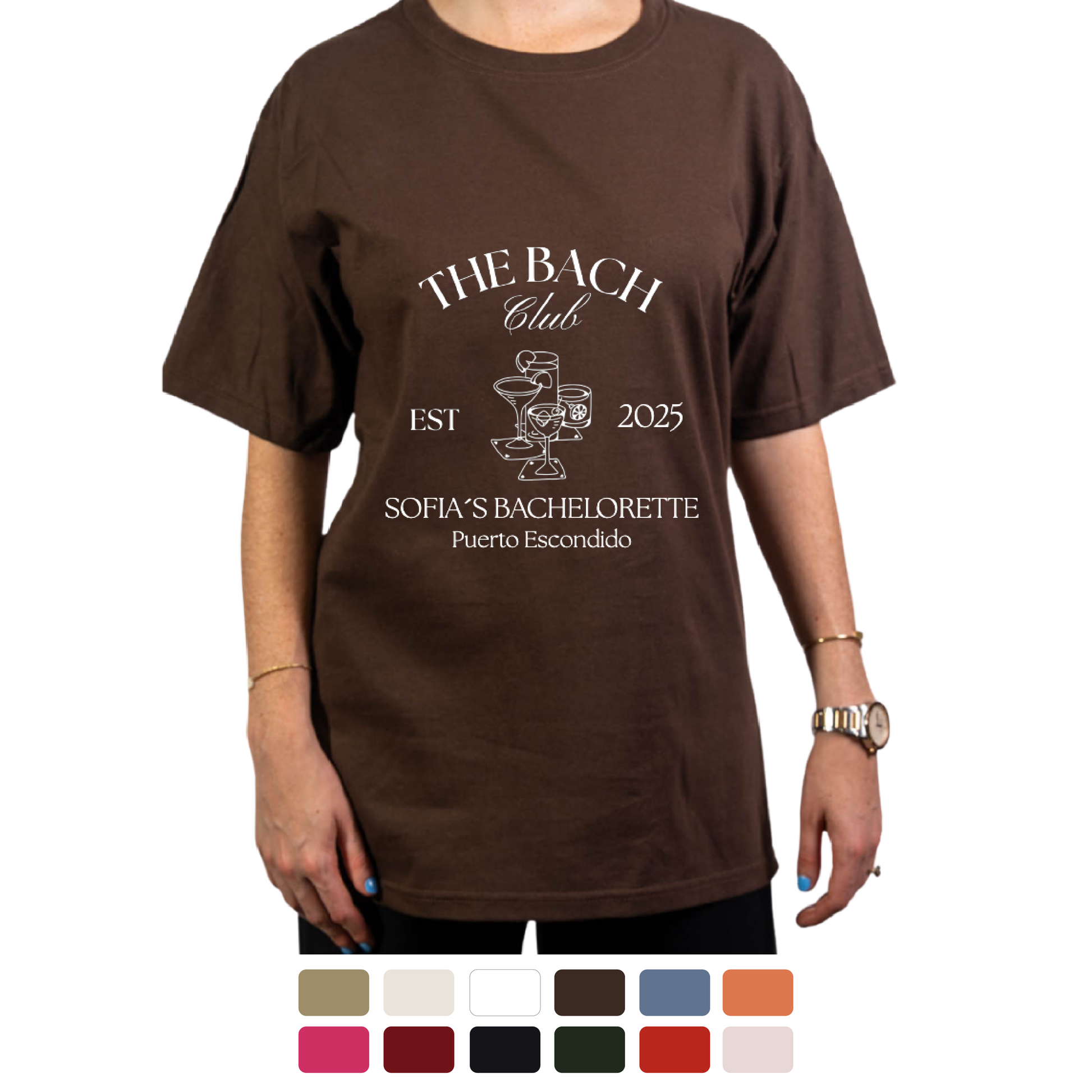 Haz que tu despedida de soltera sea inolvidable con esta camiseta oversize personalizada estilo "Bach Club".