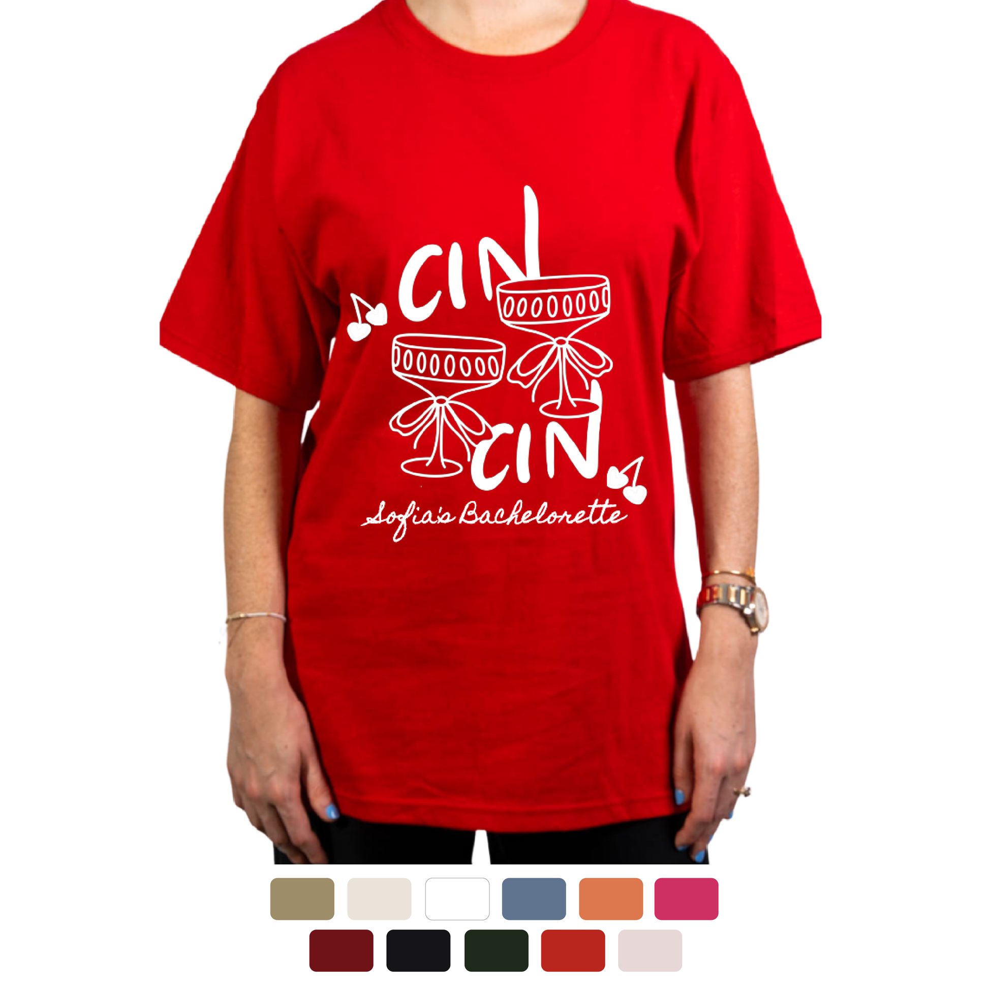 Haz que tu despedida de soltera sea inolvidable con esta camiseta oversize personalizada estilo "Cin Cin".