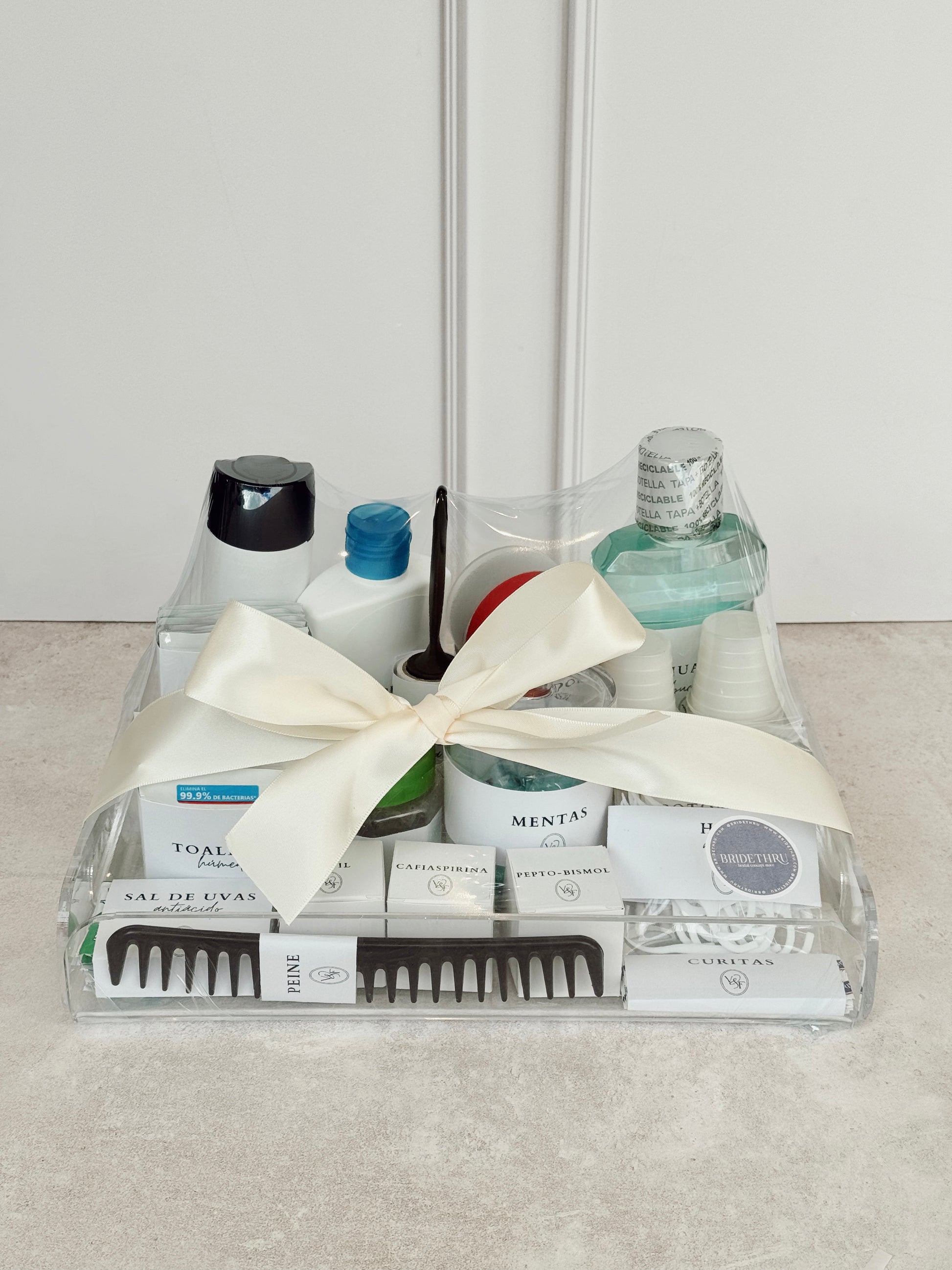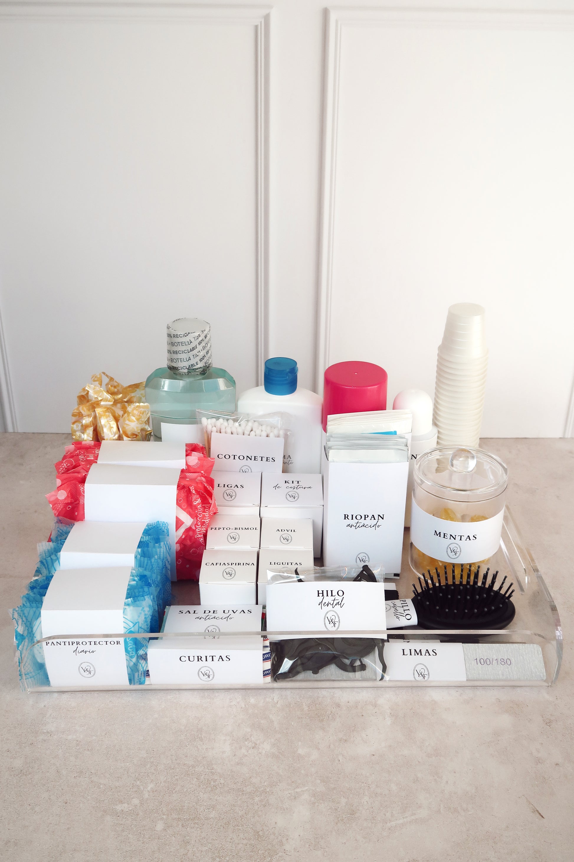 Sorprende a tus invitados con este kit de amenidades de higiene, salud y belleza. Ideal para colocar en los baños de tu boda o cualquier evento ofreciendo todo lo necesario para cualquier emergencia y brindar comodidad a los asistentes.